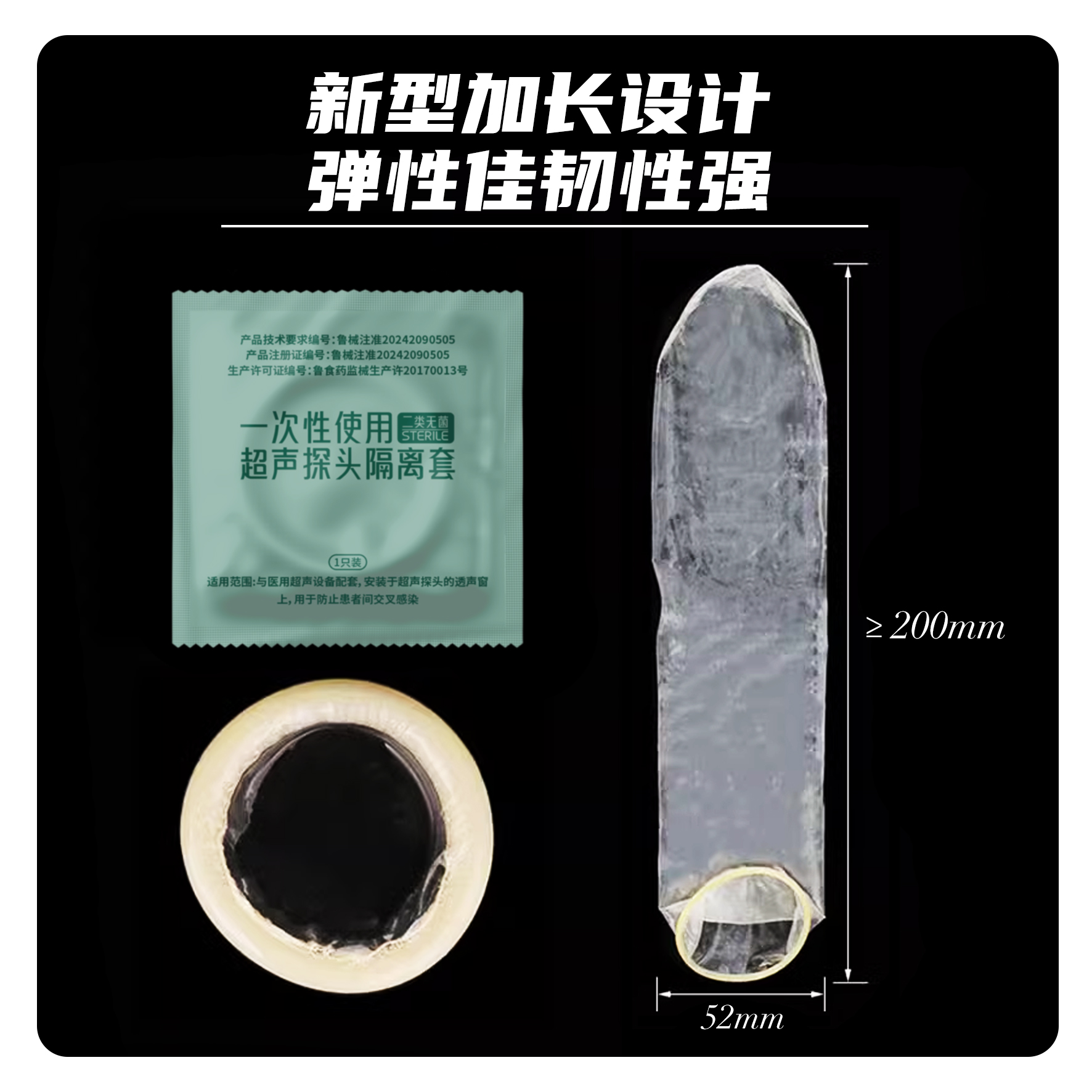普通探头保护套过厚,容易导致探测图像不清晰,检测结果有误。澳门新葡萄新京威尼斯隔离透声膜采用进口乳胶,隐形透明,透声性能好。就像给探头戴了层隐形雨衣,既防交叉感染,又能保证音波畅通。经临床验证,图像质量与直接接触检查无异,连0.2mm的微钙化灶都逃不过它的法眼。厚度仅相当于头发丝的1/3,贴合时几乎感受不到存在,告别传统套膜带来的"隔阂感"。
