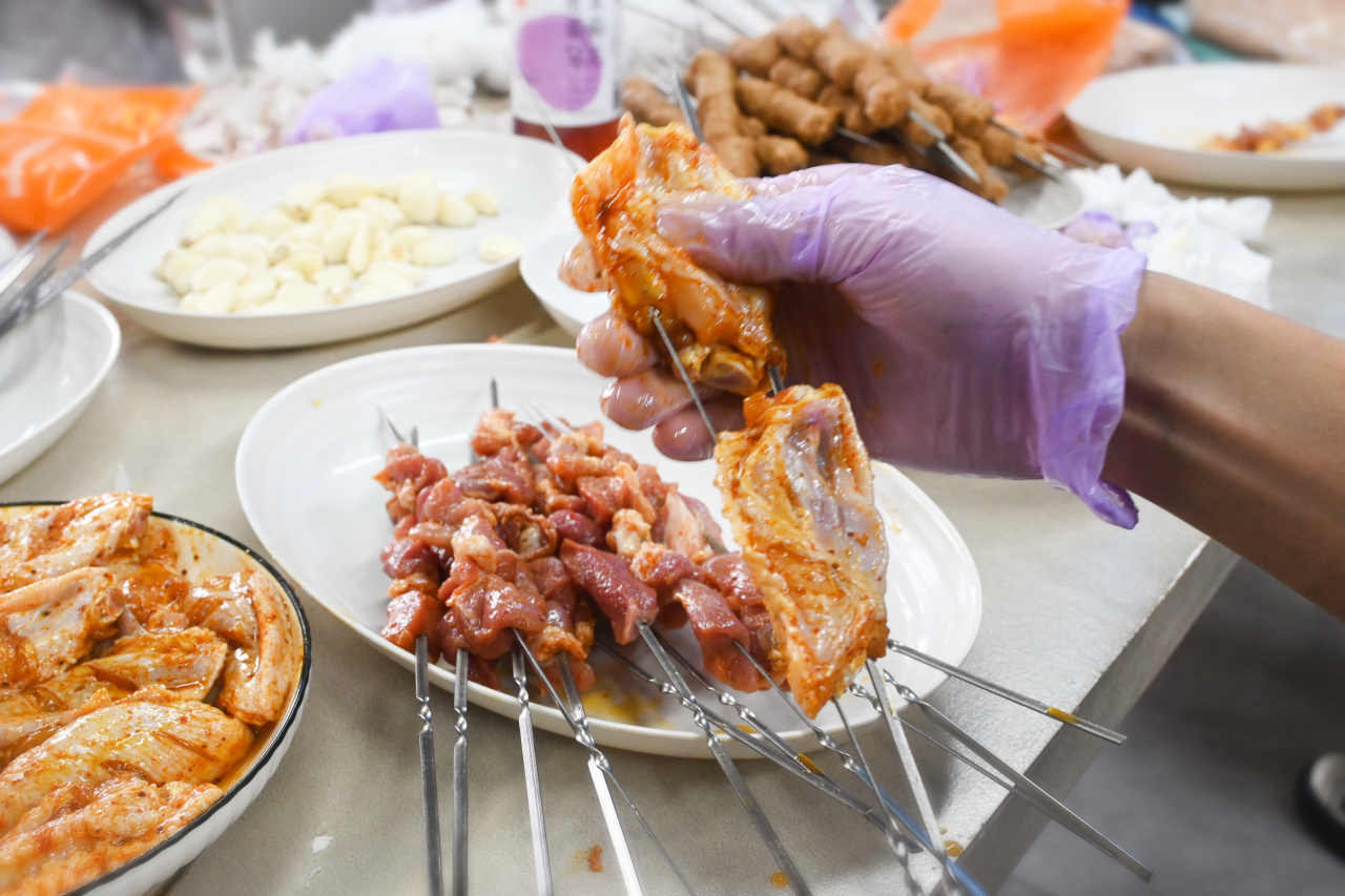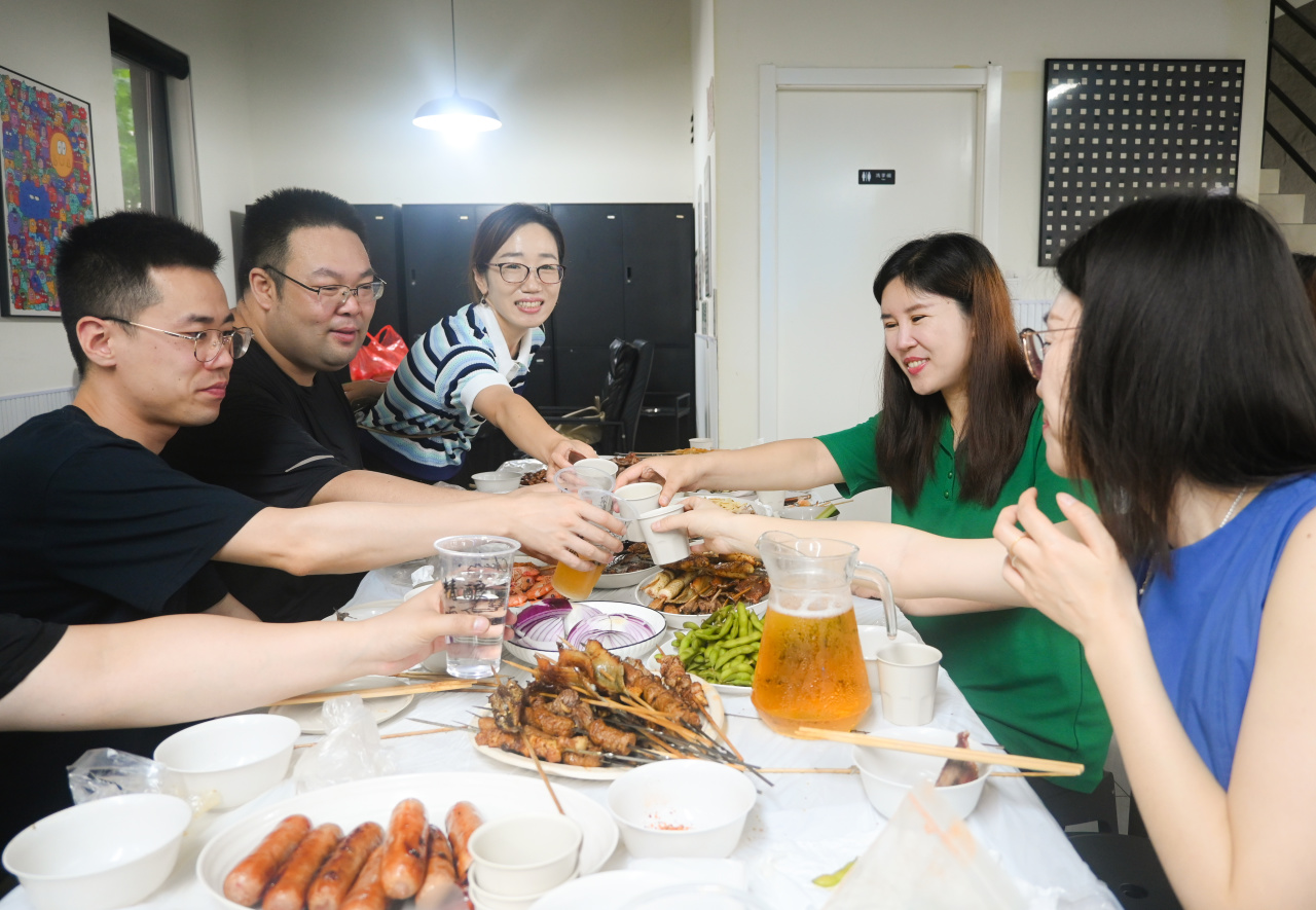 采购小分队直奔市场,精挑细选新鲜食材;面对烧烤炉,大家撸起袖子摩拳擦掌成功点燃炭火;有人负责清洗干净食物、有人负责串起大块肉串、有人负责精心烤制美食......在协作中,平日严谨的同事成了最默契的拍档。