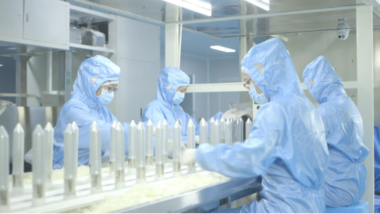 生产线已实现高度机械化和自动化,他们身着无菌工作服、戴着口罩和手套,负责关键环节。在高效生产的同时,对各个环节实时监督和管理。